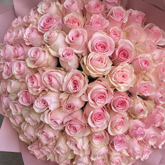 Ekskluzīvs ziedu sveiciens, ļoti liels pušķis no 101 vienas rozā rozes, zieda garumu varat izvēlēties sākot no 40 cm.