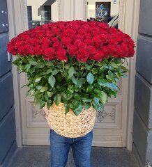 Ekskluzīvs ziedu sveiciens, ļoti liels ziedu pušķis no 201 vienas sarkanas rozes, ziedu garums 60 cm.