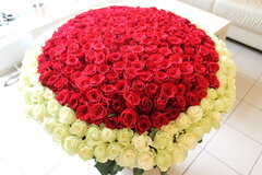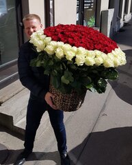 201 balta un sarkana roze grozā.