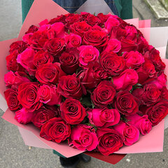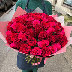 51 aveņu krāsas roze elegantā pušķī. Ja vēlaties, pušķi iespējams papildināt ar papildu ziediem. Ziedu izcelsmes valsts: Nīderlande.