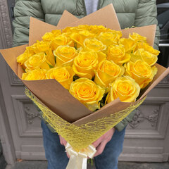 Dzeltenas rozes. Pušķis ar iespēju mainīt ziedu skaitu un garumu, minimālais ziedu skaits pušķī ir 15 gab.