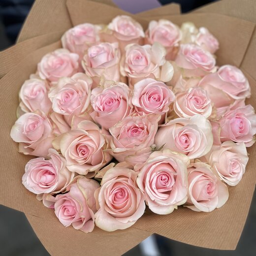 Rozā 40-50 cm garu rožu pušķis dekoratīvā papīrā. Pušķī iespējams mainīt ziedu skaitu sākot no 15 rozēm. Izvēlieties nepieciešamo rožu skaitu, mēs izveidosim pušķi un piegādāsim izvēlētajam adresātam.