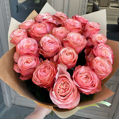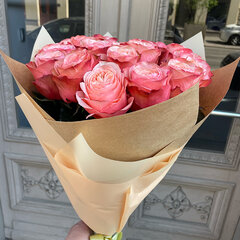 Skaistas persiku krāsas rozes dekoratīvajā iepakojumā, pušķī iespējams mainīt ziedu skaitu atbilstoši Jūsu vēlmēm.