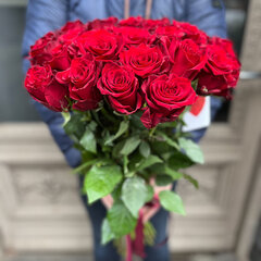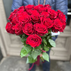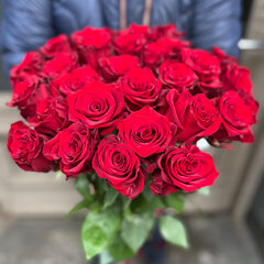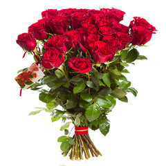 Rožu pušķis veidots no 21 sarkanām rozēm, ziedu garums 60-70cm. Ziedu pušķī iespējams mainīt ziedu skaitu.