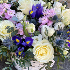 Ziedu grozs "Brīze" ir lieliska dāvanu variants jebkuram īpašam cilvēkam un notikumam. Šajā burvīgajā grozā apvienotas elegantas rozes, maigās lefkojas un krāšņās lizantes, radot harmonisku un pievilcīgu kompozīciju.