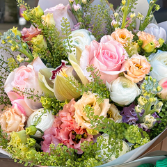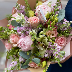 Ziedu pušķis Vasaras Mirdzums ir perfekta izvēle, lai piešķirtu dienai gaišu un vasarīgu noskaņojumu. Šī ziedu kompozīcija ir veidota no krāšņām rozēm, elegantiem orhidejas cymbidium ziediem, maigām lizantēm, romantiskiem ranunkuļiem, svaigām tulpēm, zaļumiem un smaržīgām lefkojām. Kopā 19 ziedi un zaļumi ir savienoti harmoniskā un acij tīkamā kompozīcijā, kas izstaro vieglumu un vasaras sajūtu.